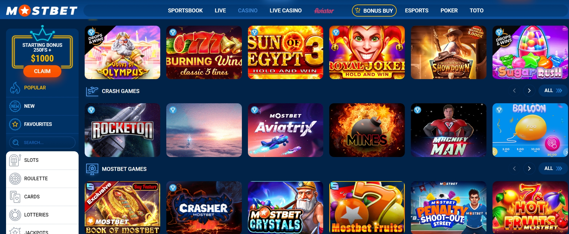 Hry, které najdete v kolekci Mostbet